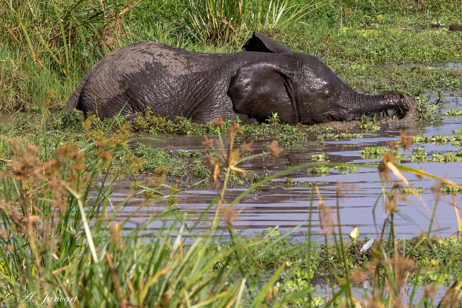 Le bain et le repas des éléphants