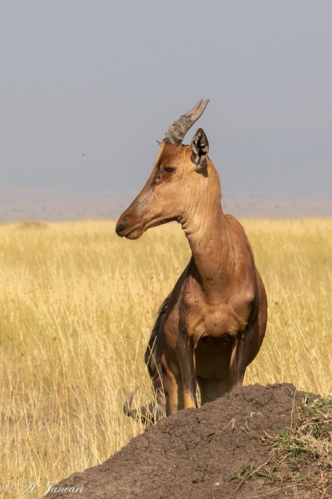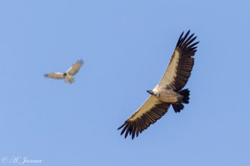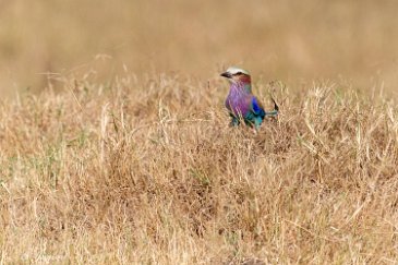 Pendant que cet otocyon surveille son terrier, un rollier à longs brins est en chasse. Il a capturé un petit lézard. D'un geste métrisé, il assure sa prise avant de prendre son envol.