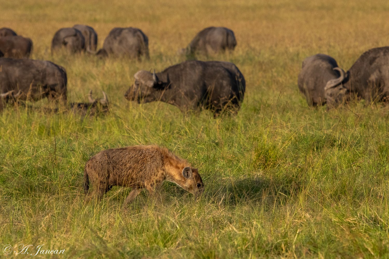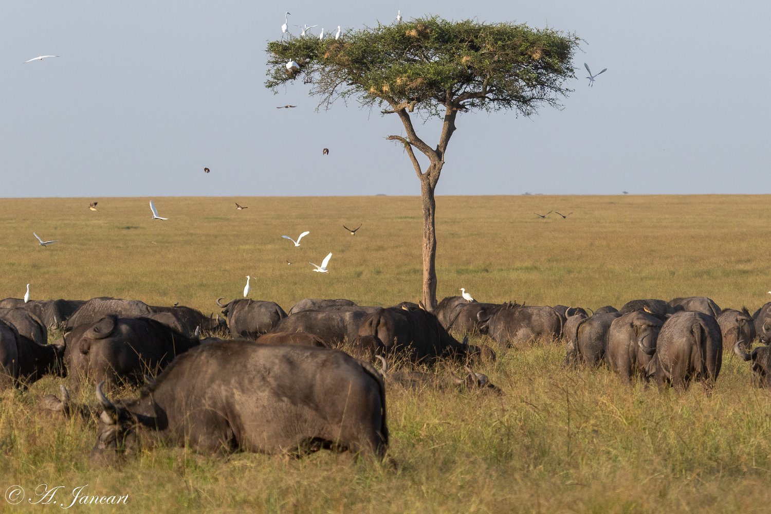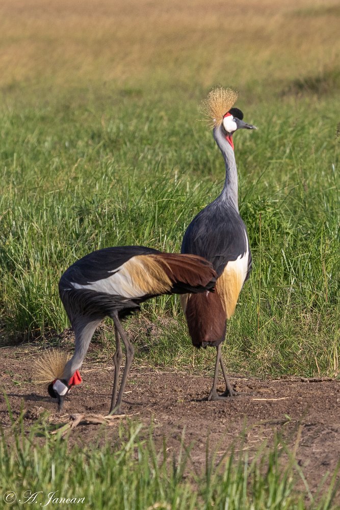 Cobra noir Cobra noir Vautour oricou Chacal à chabraque Zèbres de Grant Gazelle de Grant Gazelle de Grant Alouette Aigle pêcheur vocifère Alouette Grue royale Chacal à chabraque Buffles Buffle et hyène tachetée Hérons garde-boeufs Ombrette d'Afrique Buffles et hyène tachetée